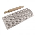Ravioli Mold Maker, 12-5/8"L x 4-3/4"W x 7/8"H, with beechwood roll pin, makes (24) 1-3/8" rounds, rubber feet, aluminum, Paderno, Ethnic Cuisine