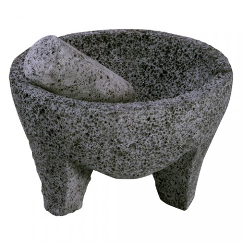 Molcajete, 24 oz., 8" dia. x 5"H, 7" inner dia., round, with grinding stone (A5400049), grill & stove top safe, rough texture, hand-wash only (without soap), volcanic rock, black, Paderno, Ethnic Cuisine