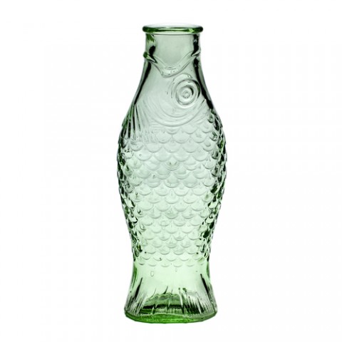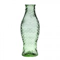 Bottle, 4-1/8" x 3" x 11-3/8"H, fish design, without lid, dishwasher safe, glass, Serax, Paola Navone - Herring, green