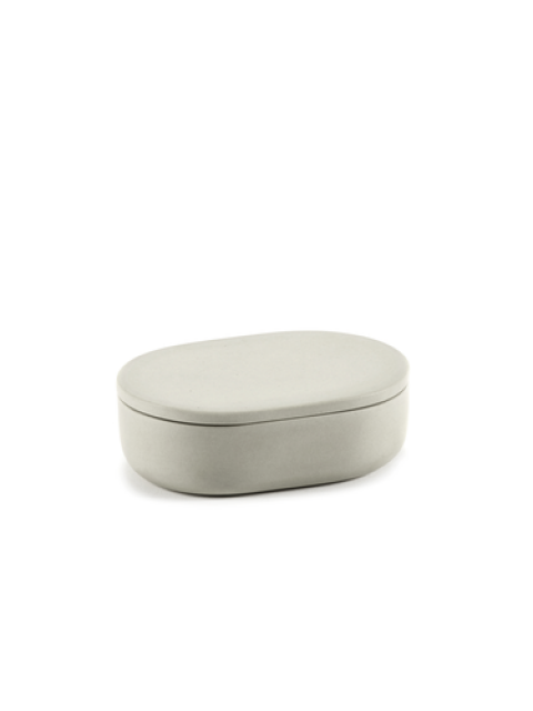 Box, with Lid, 4"L x 2 3/4"W x 1 1/4"H, oval, dishwasher safe, porcelain, Beige, Serax, Bertrand Lejoly - Cose (Special Order Item)