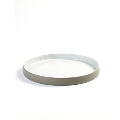 Plate, 8" dia. x 1-1/8"H, tight, medium, round, deep rim, dishwasher safe, porcelain, Serax, Martine Keirsebilck - Dusk, grey/white