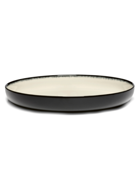 High Plate, 10-5/8" x 10 5/8" x 1 5/8"H, dishwasher safe, porcelain, white/black, Ann Demeulemeester, Ann Demeulemeester - Dé