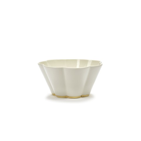 Bowl, 19 oz., 5 7/8" dia. x 3 1/8"H, extra large, round, ribbed, dishwasher safe, porcelain, white - gold, Serax, Roger Van Damme (Special Order Item)