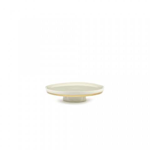 Cake Stand, 5 1/2" dia. x 1 3/8"H, extra small, round, porcelain, white - gold, Serax, Roger Van Damme