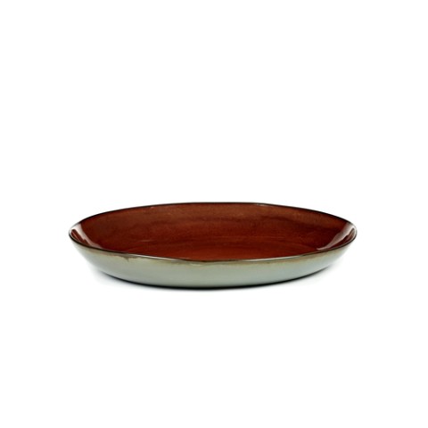 Plate, 14" dia. x 3-1/8"H, deep, extra-large, round, dishwasher safe, Stoneware, Serax, Anita Le Grelle, rust/smokey blue (Special Order Item)