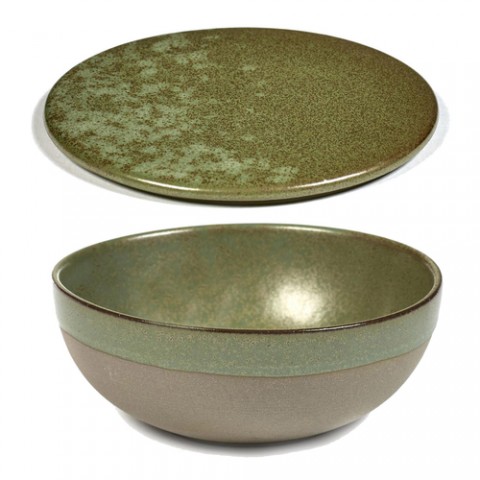 Bowl with Lid, 5-1/8" dia. x 2"H, round, dishwasher safe, stoneware/reactive glaze, Serax, Sergio Herman - Surface, camogreen