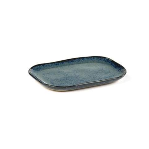 Plate N°3, 5-3/4" x 4-1/8" x 1/2"H, medium, rectangular, dishwasher safe, oven safe up to 350°F/180°C, stoneware, Merci, Blue/Grey
