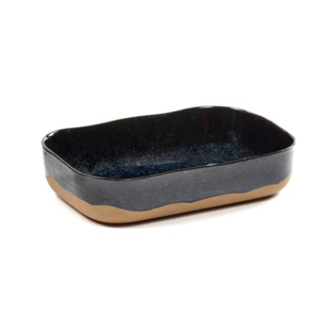 Plate N°5, 9" x 5-7/8" x 2"H, large, extra deep, rectangular, dishwasher safe, oven safe up to 350°F/180°C, stoneware, Merci, Dark Blue