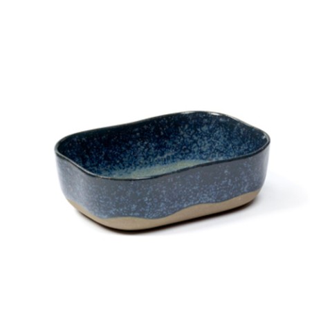 Plate N°6, 5-3/4" x 4-1/8" x 1-3/4"H, medium, extra deep, rectangular, dishwasher safe, oven safe up to 350°F/180°C, stoneware, Merci, Blue/Grey
