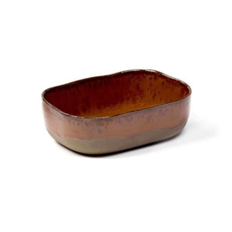 Plate N°6, 5-3/4" x 4-1/8" x 1-3/4"H, medium, extra deep, rectangular, dishwasher safe, oven safe up to 350°F/180°C, stoneware, Merci, Ocre/Brown