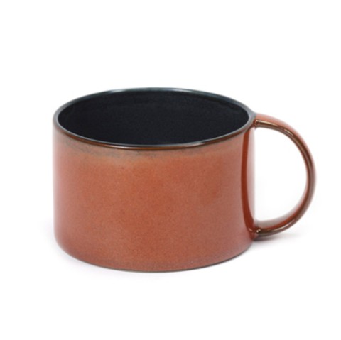 Coffee Cup, 6-7/16 oz., 3-1/8" dia. x 2"H, dishwasher safe, stoneware, Anita Le Grelle, Dark Blue/Rust (Special Order Item)