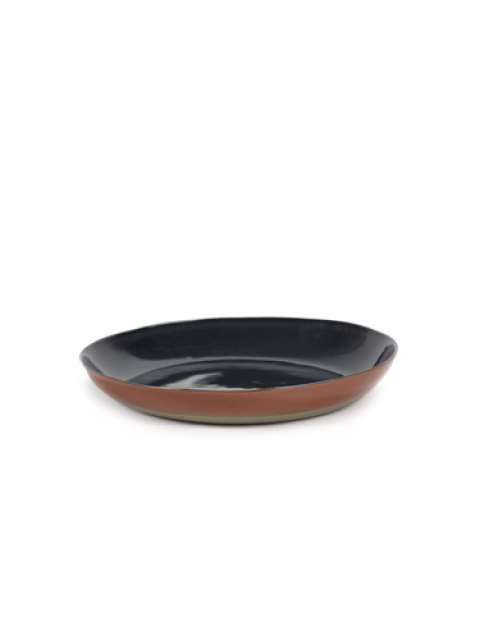 Serving Dish, 14" x 14" x 2 3/8"H, round, dishwasher safe, Stoneware, dark blue/rust, Serax, Terres de rêves tableware by Anita Le Grelle