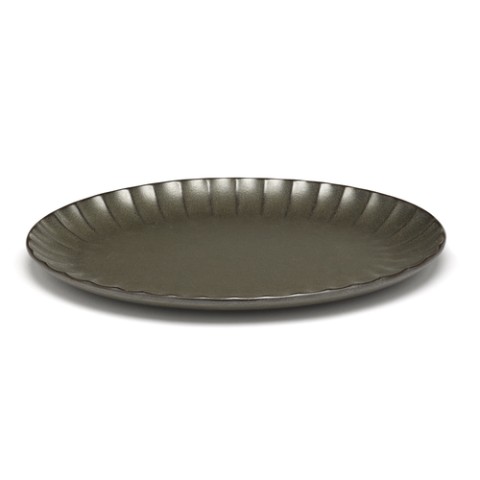 Plate, 9-7/8" x 6-7/8" x 5/8"H, small, oval, dishwasher safe, stoneware, Serax, Sergio Herman - Inku, green