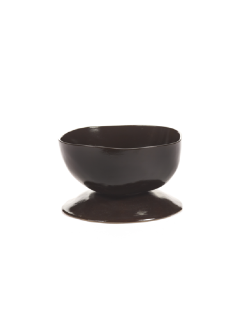 Large High Bowl, on foot, 8" x 8" x 5 1/8"H, round, stoneware, Ebony, Serax, LaMere, Marie Michielssen