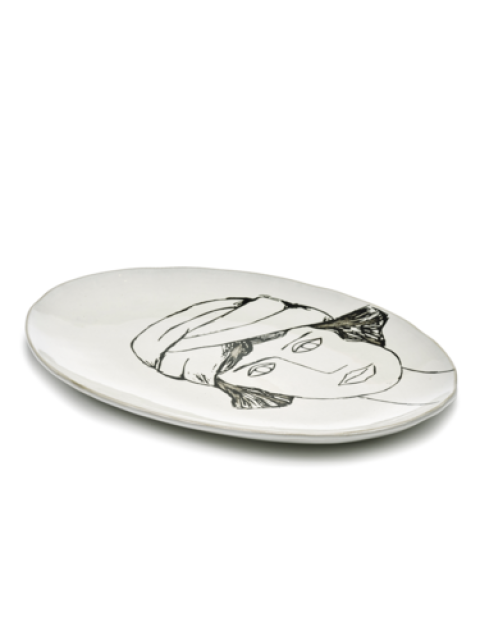 Plate, 14 3/4" x 10 5/6" x 4/5"H, oval, dishwasher safe, stoneware, Off White/Black, Serax, LaMere, Marie Michielssen