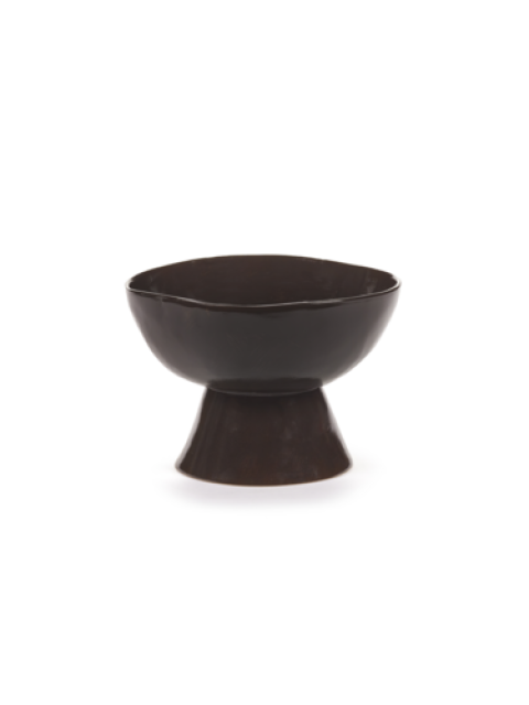 High Bowl, with large foot, 8" x 8" x 5 5/7"H, round, stoneware, Ebony, Serax, LaMere, Marie Michielssen