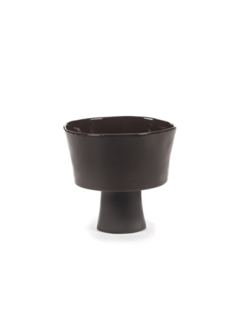 High Bowl, with foot, 7" x 7" x 6 1/2"H, round, stoneware, Ebony, Serax, LaMere, Marie Michielssen