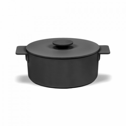 Pot, 2 qts., 7-3/4", round, with lid, enamel cast iron, Serax, Sergio Herman - Surface, black
