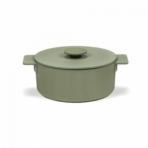 Pot, 3 qts., 9", round, with lid, enamel cast iron, Serax, Sergio Herman - Surface, camogreen (Special Order Item)