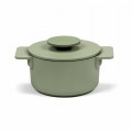 Pot, 1/2 qt., 4-3/4", round, with lid, enamel cast iron, Serax, Sergio Herman - Surface, camogreen (Special Order Item)