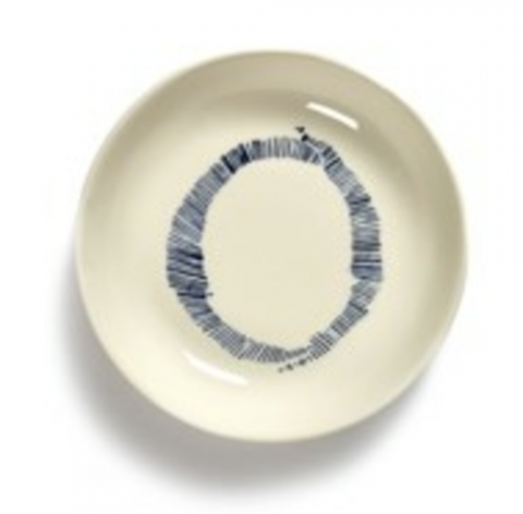 Dish, S, White Swirl-Stripes Blue, 4 1/2" dia. x 3/4"H, round, dishwasher safe, Stoneware, White - Red, Serax, Ottolenghi - Feast (to be discontinued, contact factory for availability)