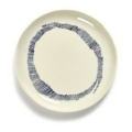 Plate, S, White Swirl-Stripes Blue, 7 1/2" dia. x 3/4"H, round, dishwasher safe, Stoneware, Blue - White, Serax, Ottolenghi - Feast