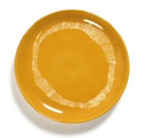 Plate, S, Sunny Yellow Swirl-Stripes White, 7 1/2" dia. x 3/4"H, round, dishwasher safe, Stoneware, Yellow - White, Serax, Ottolenghi - Feast