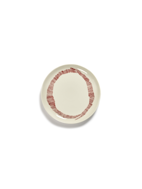 Plate, M, White Swirl-Stripes Red, 8 7/8" dia. x 3/4"H, round, dishwasher safe, Stoneware, White - Red, Serax, Ottolenghi - Feast