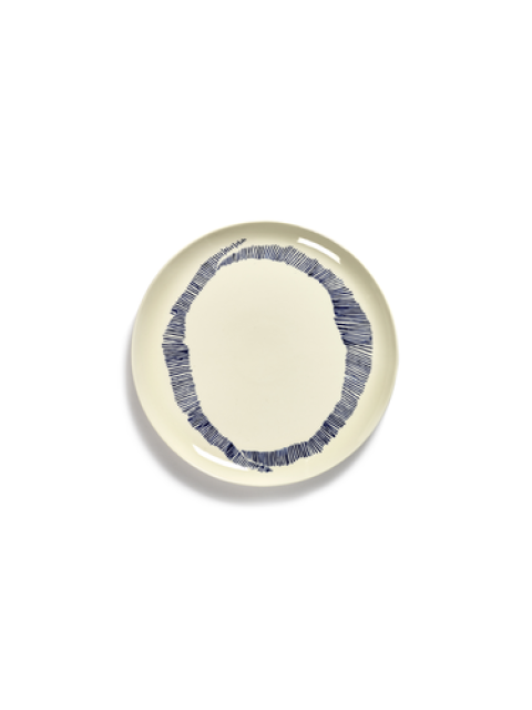 Plate, L, White Swirl-Stripes Blue, 10 3/8" dia. x 3/4"H, round, dishwasher safe, Stoneware, Blue - White, Serax, Ottolenghi - Feast