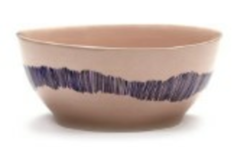 Bowl, S, Delicious Pink Swirl-Stripes Blue, 6 1/4" dia. x 3"H, round, dishwasher safe, Stoneware, Pink, Serax, Ottolenghi - Feast