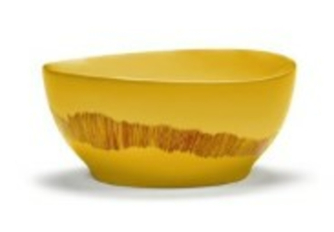 Bowl, S, Sunny Yellow Swirl-Stripes Red, 6 1/4" dia. x 3"H, round, dishwasher safe, Stoneware, Yellow, Serax, Ottolenghi - Feast