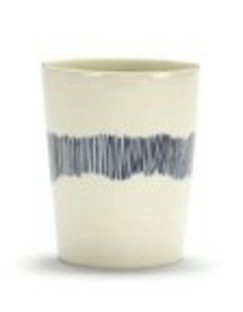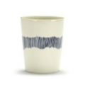 Tea Cup, White Swirl-Stripes Blue, 11 oz., 3 3/8" dia. x 4 1/8"H, round, dishwasher safe, Stoneware, White, Serax, Ottolenghi - Feast