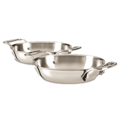 Gratins, 6" dia., round, riveted handles, tri-ply construction, 18/10 stainless steel and aluminum, mirror finish, All-Clad, Specialty Cookware Collection (set of two) (Special Order Item)