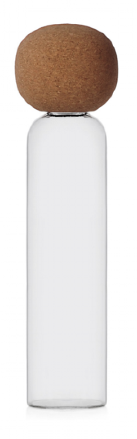 Big Bottle, 33.8 oz., 3.9" dia. x 13.4"H, dishwasher safe at low temperatures, borosilicate / cork lid, Ichendorf, Kokeshi