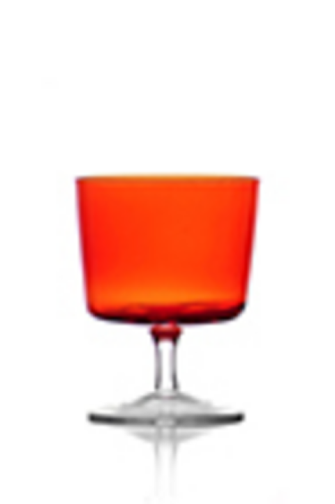 Water Glass, 7.4 oz., 3" dia. x 3.9"H, stemmed, dishwasher safe at low temperatures, glass handmade and mouthblown, orange, Ichendorf, Aurora