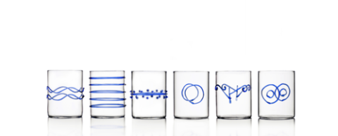 Water Assorted, 9.1 oz., 2.8" dia. x 3.6"H, dishwasher safe at low temperatures, borosilicate, Ichendorf, Deco' Blu (set of 6)