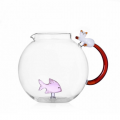 Jug, Pink Fish & White Cat With Amber Tail, 81.2 oz., 6.7" dia. x 6.5"H, dishwasher safe at low temperatures, borosilicate, Ichendorf, Tabby Cat