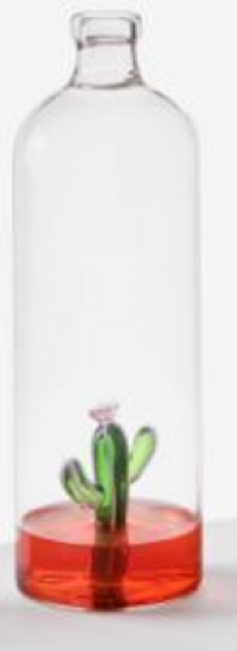 Bottle, 38.9 oz., 3.4" dia. x 10"H, dishwasher safe at low temperatures, borosilicate, green cactus, Ichendorf, Desert Plants