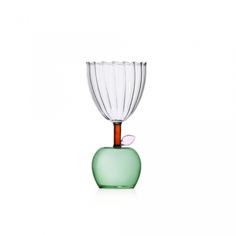 Glass, 9.5 oz., 3.4" dia. x 7.1"H, green apple stem, dishwasher safe at low temperatures, borosilicate, Ichendorf, Fruits & Flowers