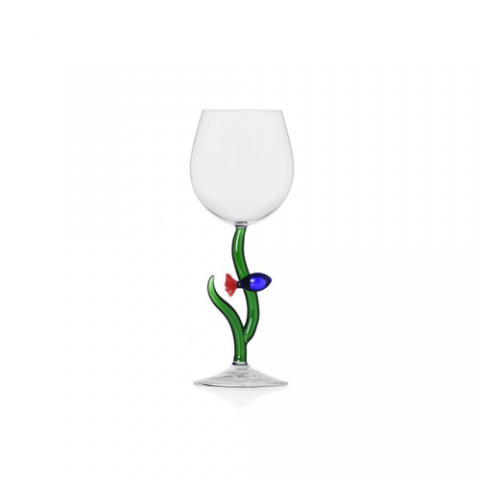 Glass, 11.8 oz., 3.4" dia. x 8.1"H, blue fish with red tail stem, hand wash recommended, borosilicate, Ichendorf, Marine Garden