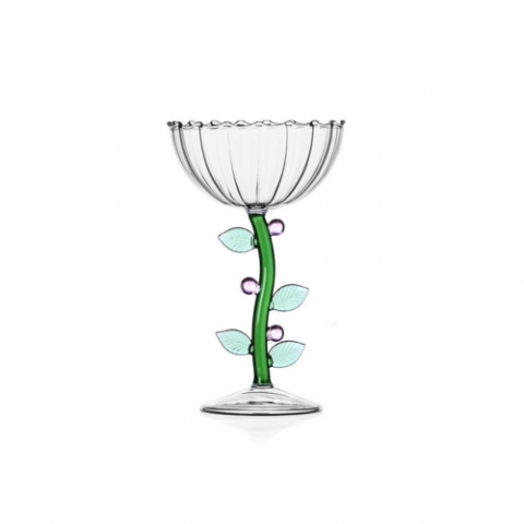 Optical Champagne Bowl Pink Flower, 9.5 oz., 4.3" dia. x 7.1"H, hand wash recommended, borosilicate, Ichendorf, Botanica