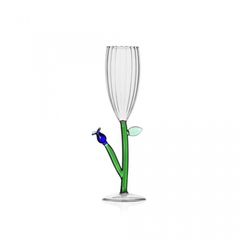Optical Flute Blue Flower, 5.4 oz., 2.8" dia. x 9.5"H, hand wash recommended, borosilicate, Ichendorf, Botanica