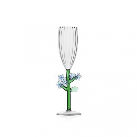 Optical Flute Light Blue Flower, 5.4 oz., 2.8" dia. x 9.5"H, hand wash recommended, borosilicate, Ichendorf, Botanica
