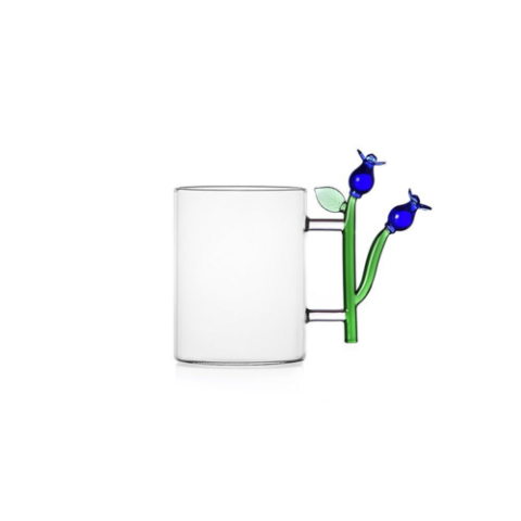 Mug, Blue Flower, 15.2 oz., 3.2" dia. x 3.9"H, hand wash recommended, borosilicate, Ichendorf, Botanica