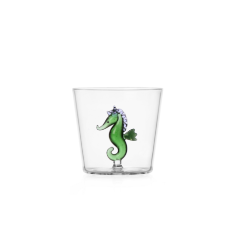 Tumbler, green seahorse, 11.8 oz., 3.4" dia. x 3.2"H, borosilicate, Ichendorf, Marine Garden (set of 2)