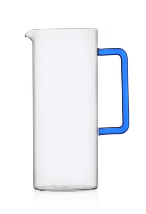 Jug With Blue Handle, 40.6 oz., 4.3" dia. x 9.1"H, dishwasher safe at low temperatures, borosilicate, Ichendorf, Tube