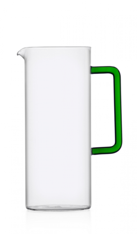 Jug With Green Handle, 40.6 oz., 4.3" dia. x 9.1"H, dishwasher safe at low temperatures, borosilicate, Ichendorf, Tube