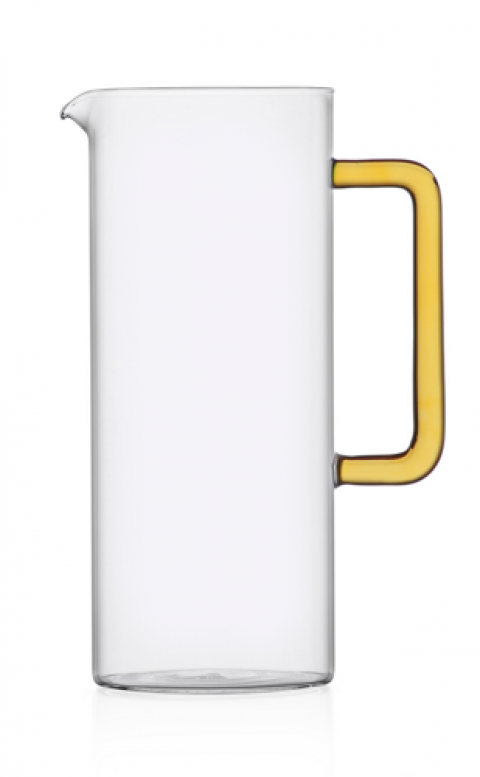 Jug With Yellow Handle, 40.6 oz., 4.3" dia. x 9.1"H, dishwasher safe at low temperatures, borosilicate, Ichendorf, Tube