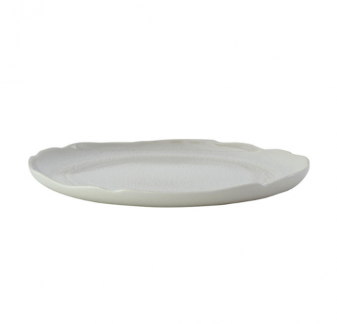 Pie Dish/Platter, 12.4 dia., 12.4"L x 12.4"W x 1"H, Stoneware, Perle/White, Jars, Plume, Made in France