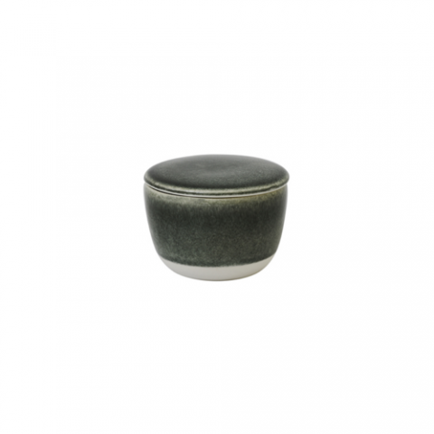 Sugar Pot, 5.33 oz., 3.14 dia., 3.14"L x 3.14"W x 2.16"H, Stoneware, Orage Uni/Green, Jars, Maguelone, Made in France